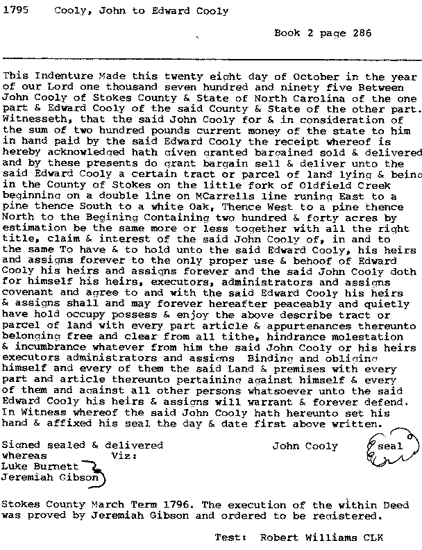 Stokes County, NC Deed Book 2, page 286
