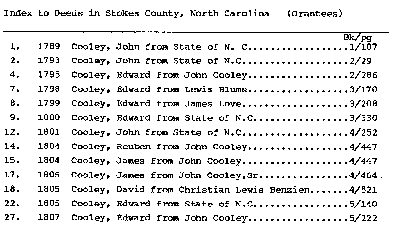 Grantees Index Stokes County NC Deeds - Cooley