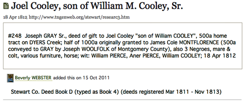 - [Fwd: RE: Cooleys in early Stewart county] Michael Cooley (Sat Dec 14 2013 - 17:49:59 CST)