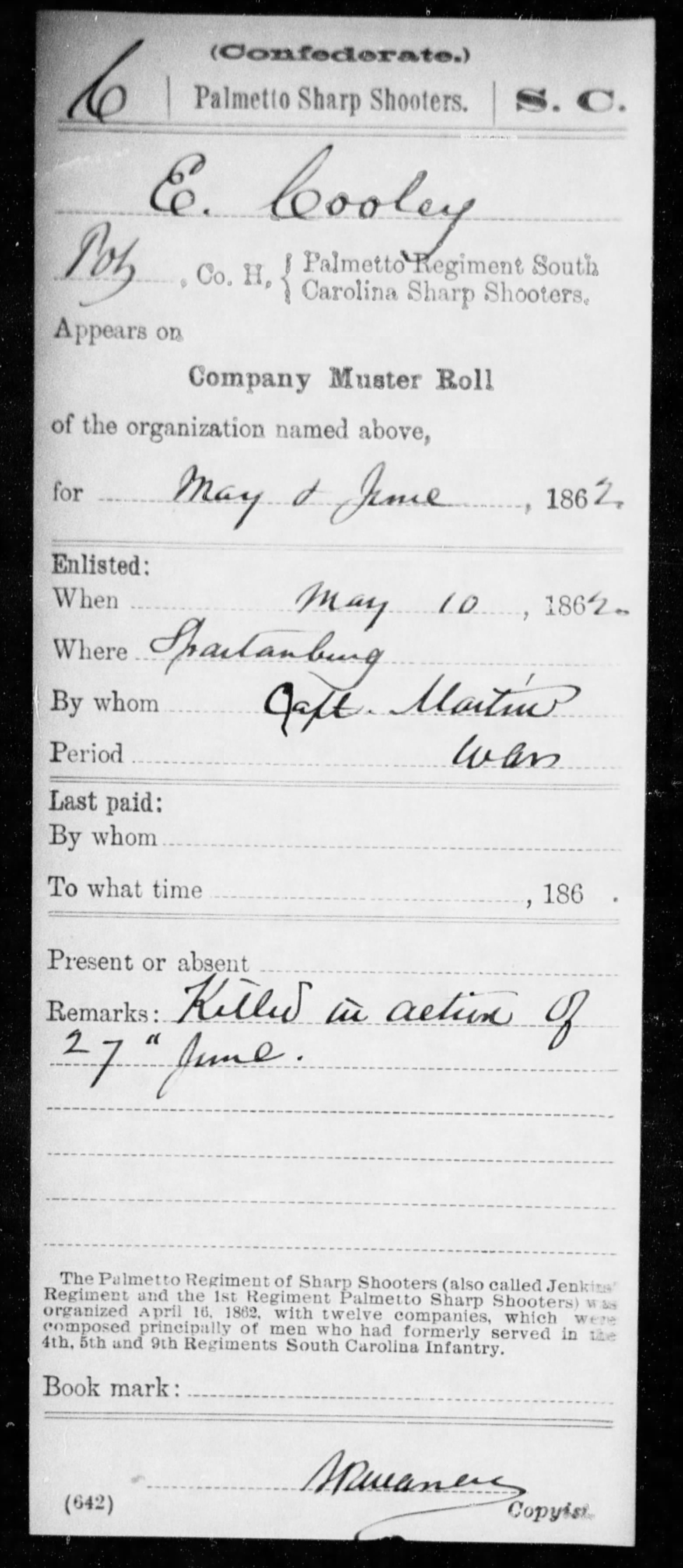 - [Fwd: Edmond Cooley (b. 1839 SC) service & death in CW] Michael Cooley (Wed May 22 2013 - 23:58:03 CDT)