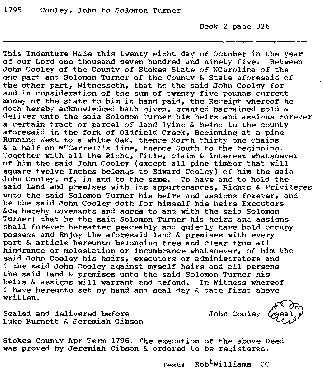 5. 1795 Cooley, John to Solomon Turner .................. 2/326