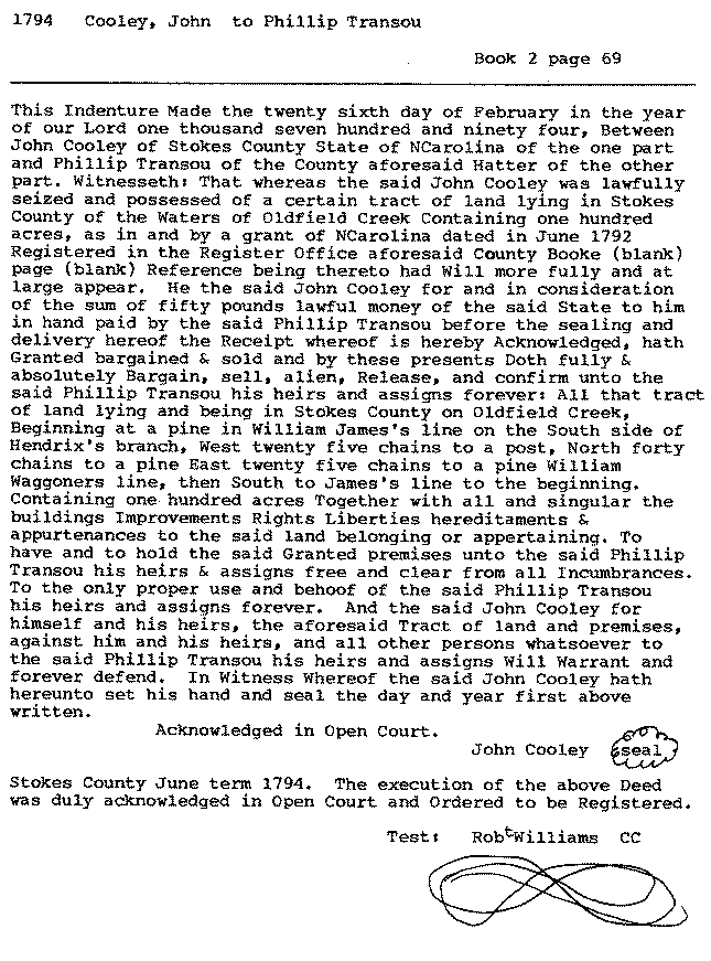 3. 1794 Cooley, John to Phillip Transou ................. 2/69
