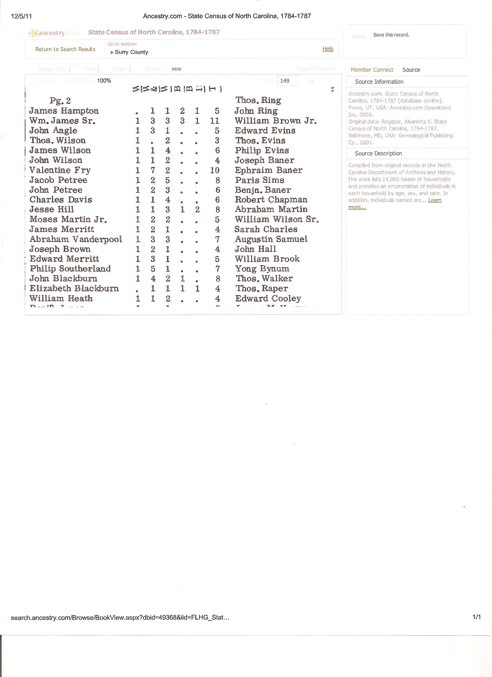 - Surry County, NC census 1784-1787 Jane Wisdom (Mon Dec 05 2011 - 09:33:25 CST)