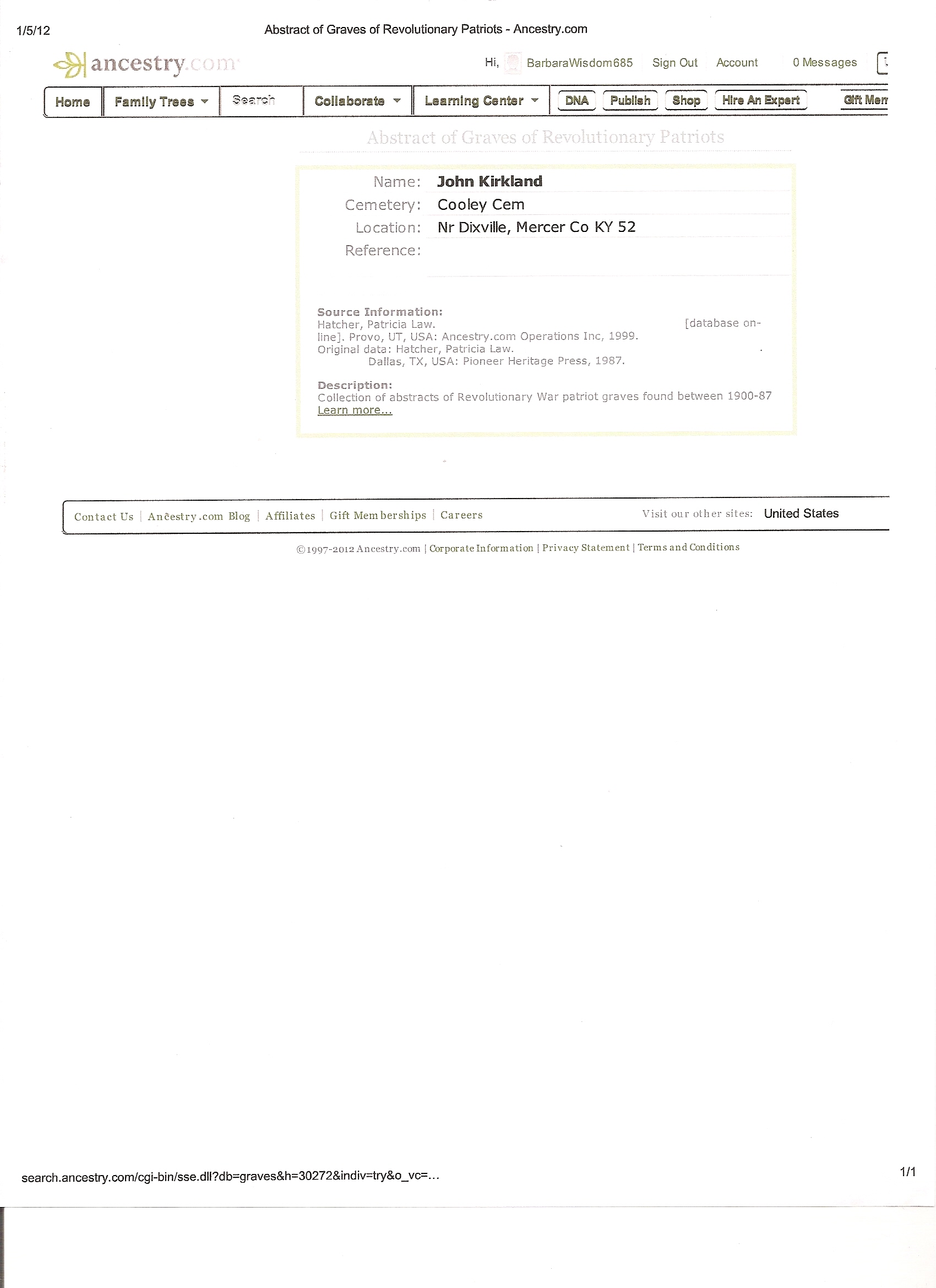 - [Fwd: Cooley Cemetery, Mercer County, Ky] Michael Cooley (Thu Jan 05 2012 - 21:25:15 CST)