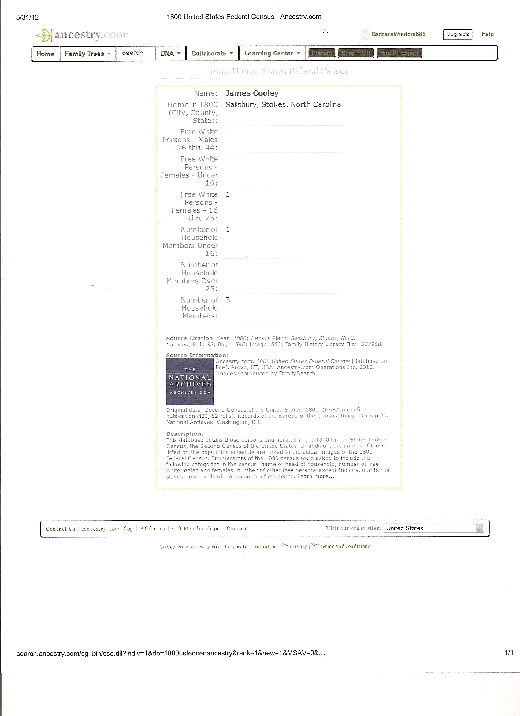 - 1800 North Carolina census Jane Wisdom (Thu May 31 2012 - 08:52:45 CDT)