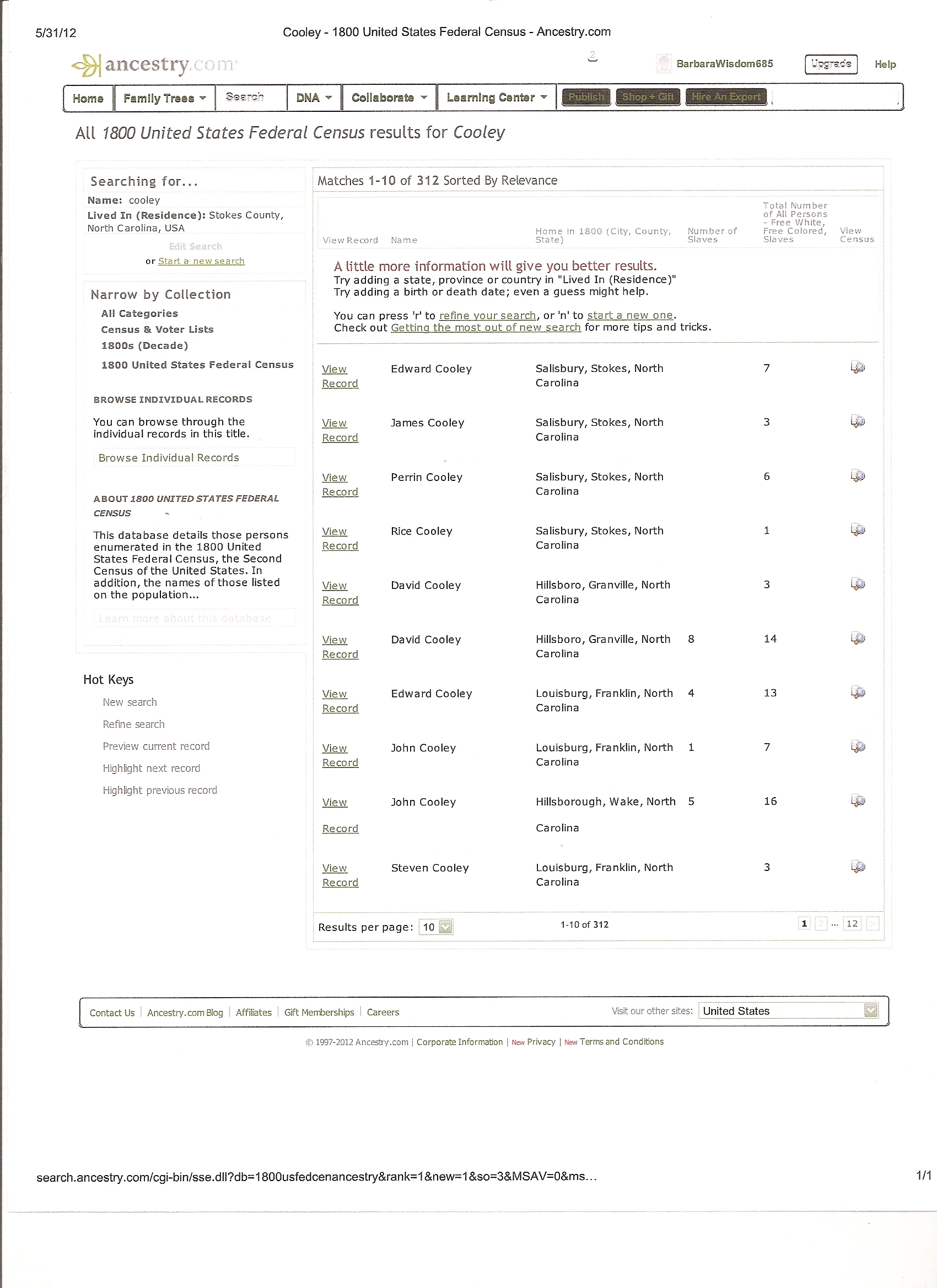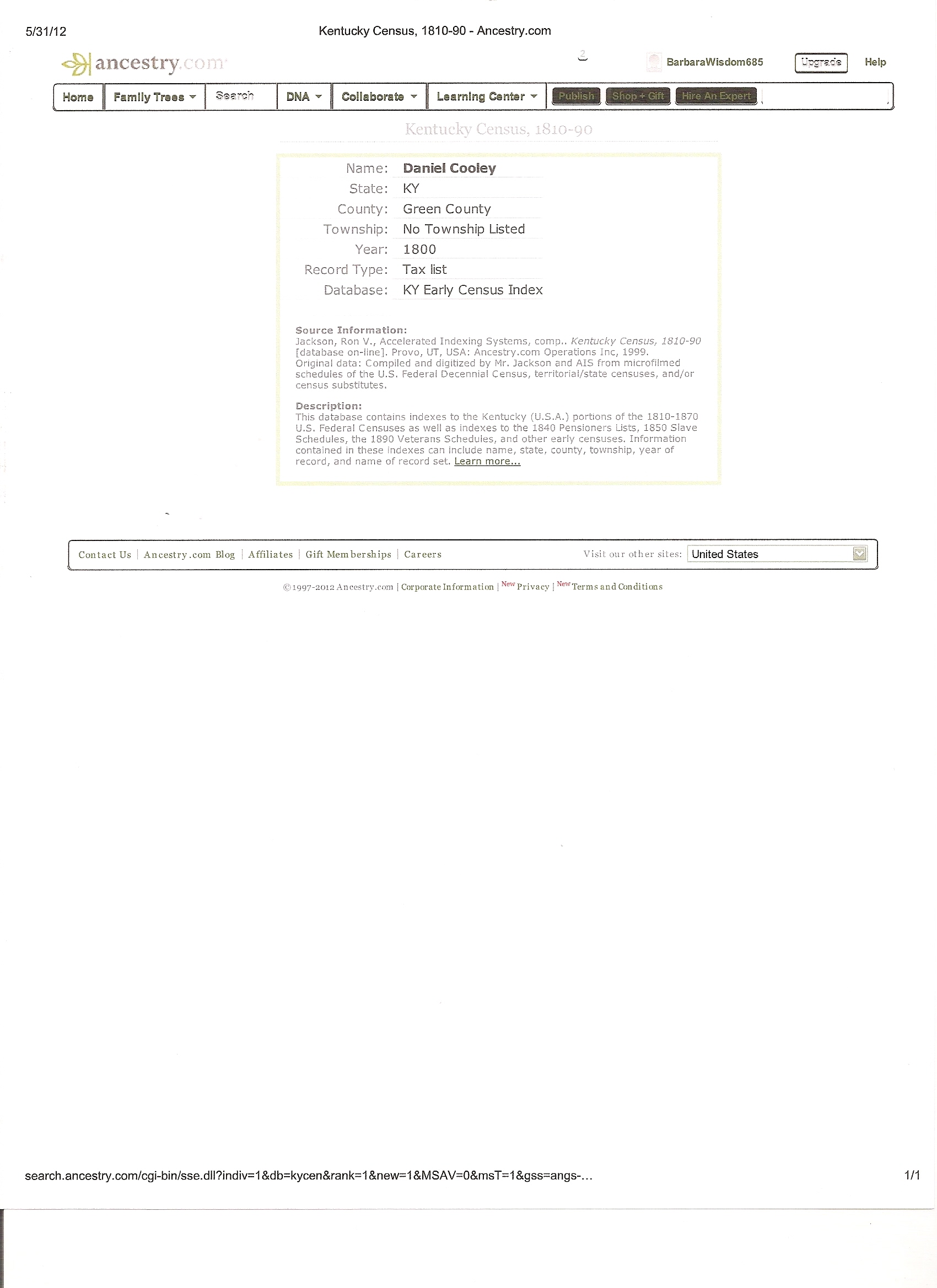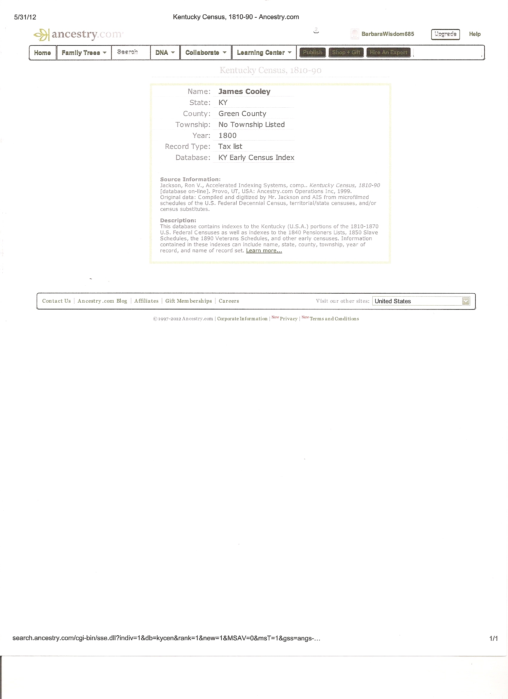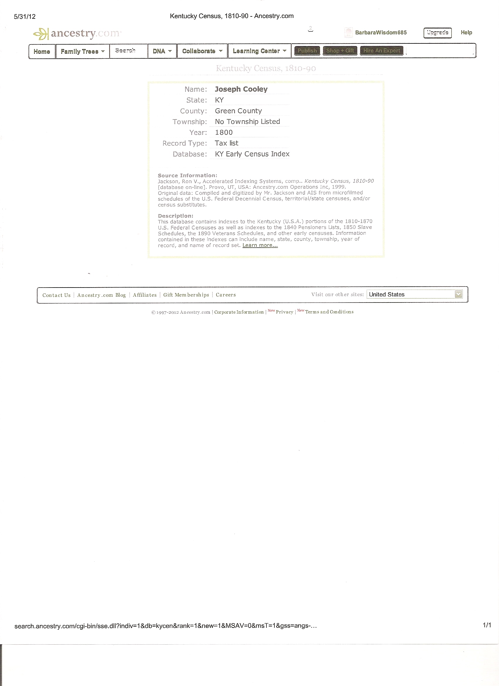 - Joseph Cooley on 1810 KY Census Mary Lou Cooley (Thu Apr 04 2013 - 18:41:40 CDT)