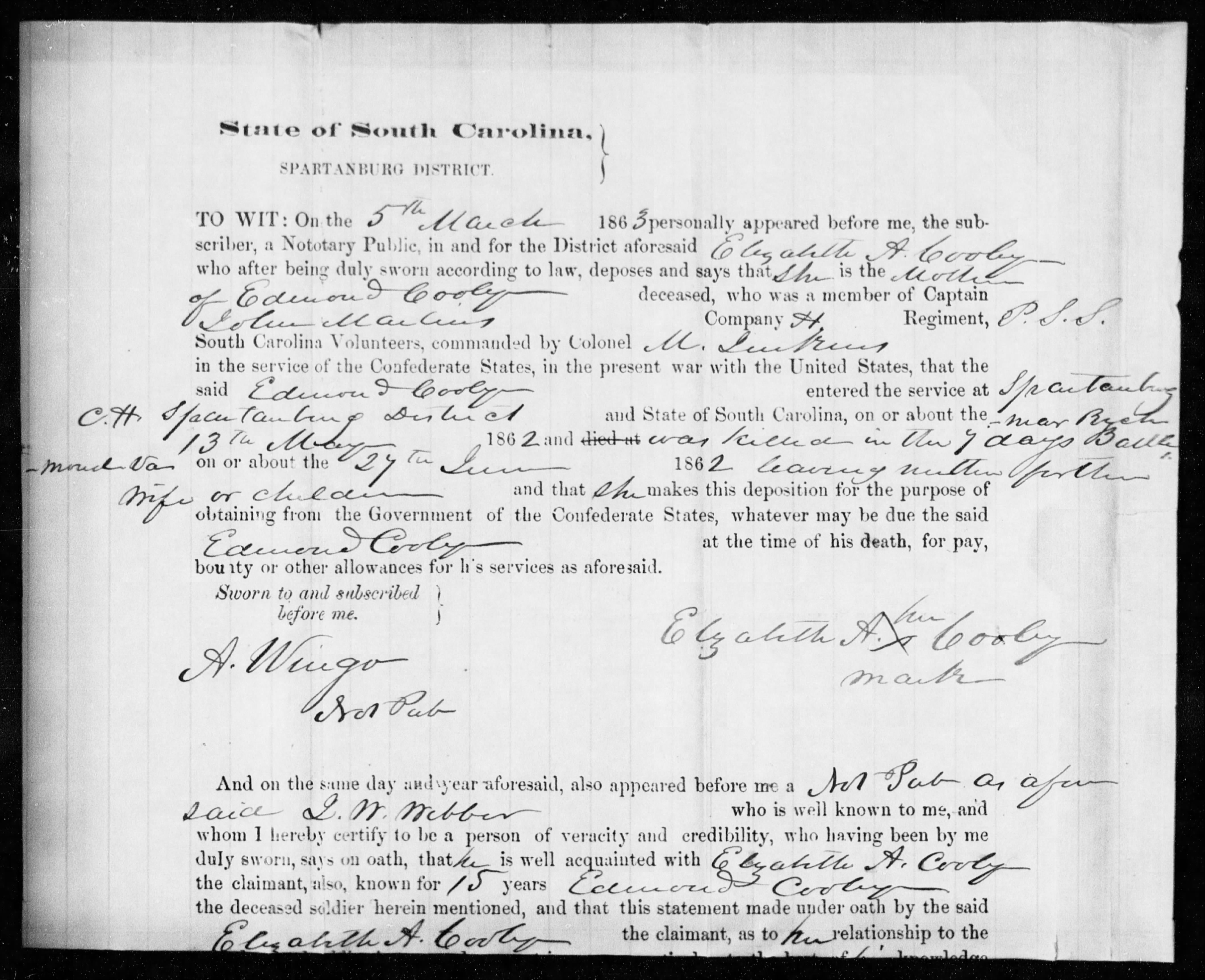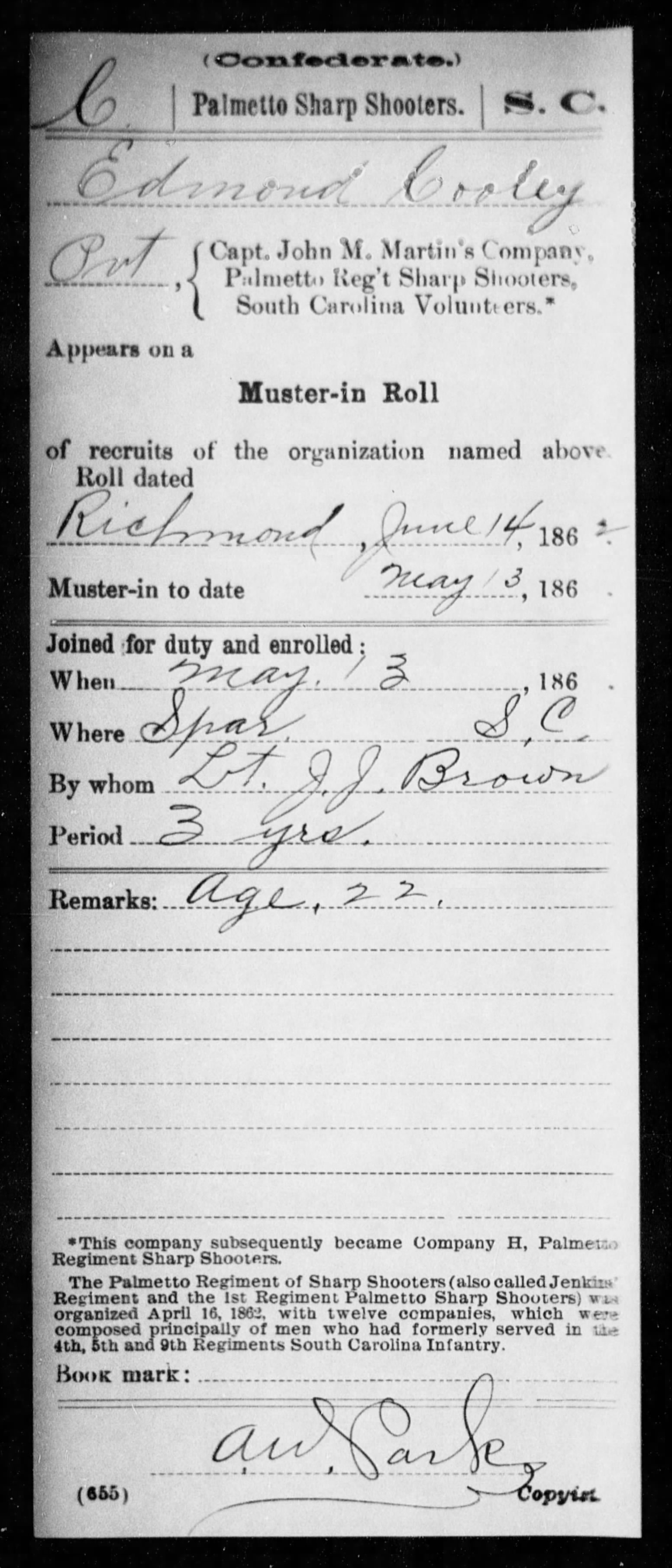 - [Fwd: Edmond Cooley (b. 1839 SC) service & death in CW] Michael Cooley (Wed May 22 2013 - 23:58:03 CDT)